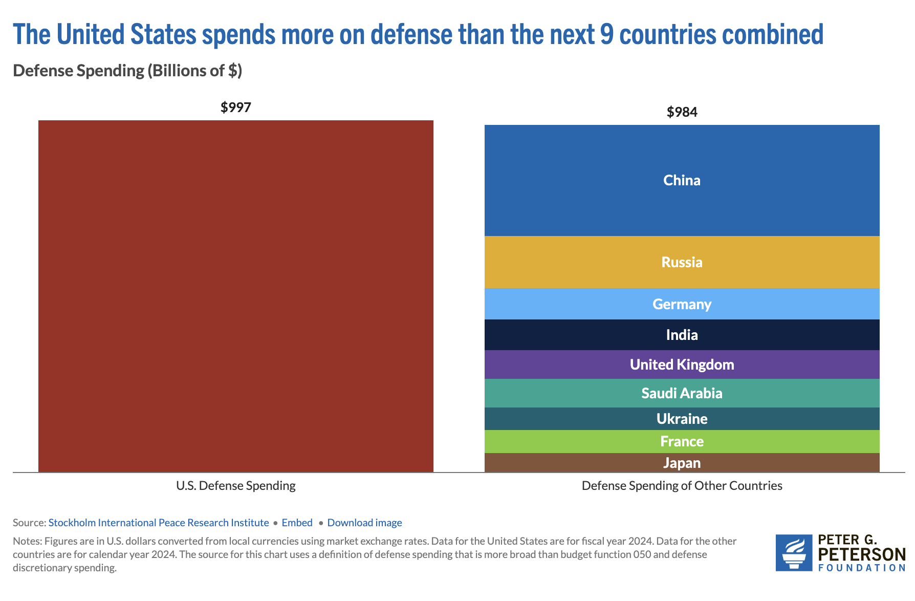 The United States Spends More on Defense than the Next 9 Countries Combined