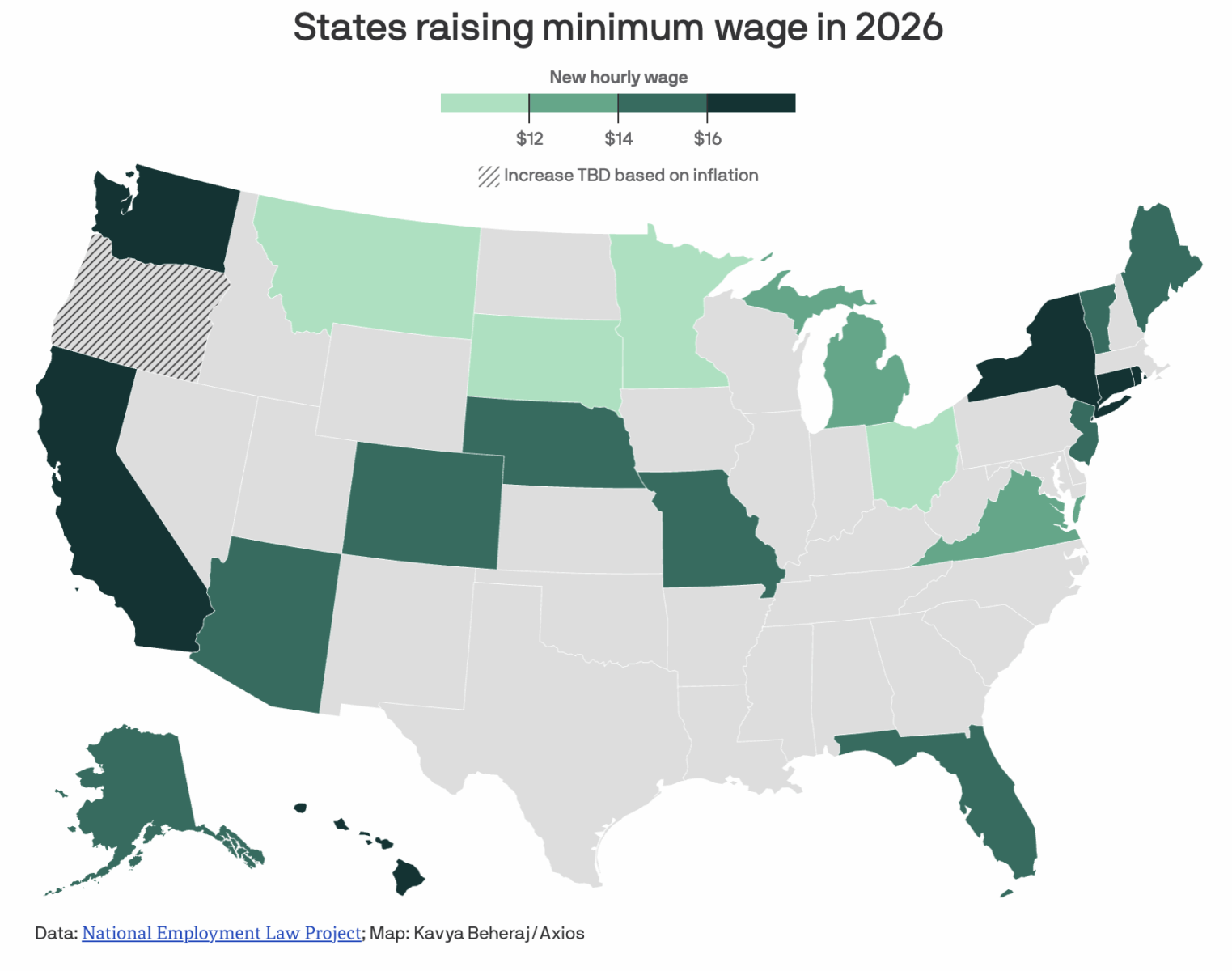 States where the minimum wage is going up in 2026