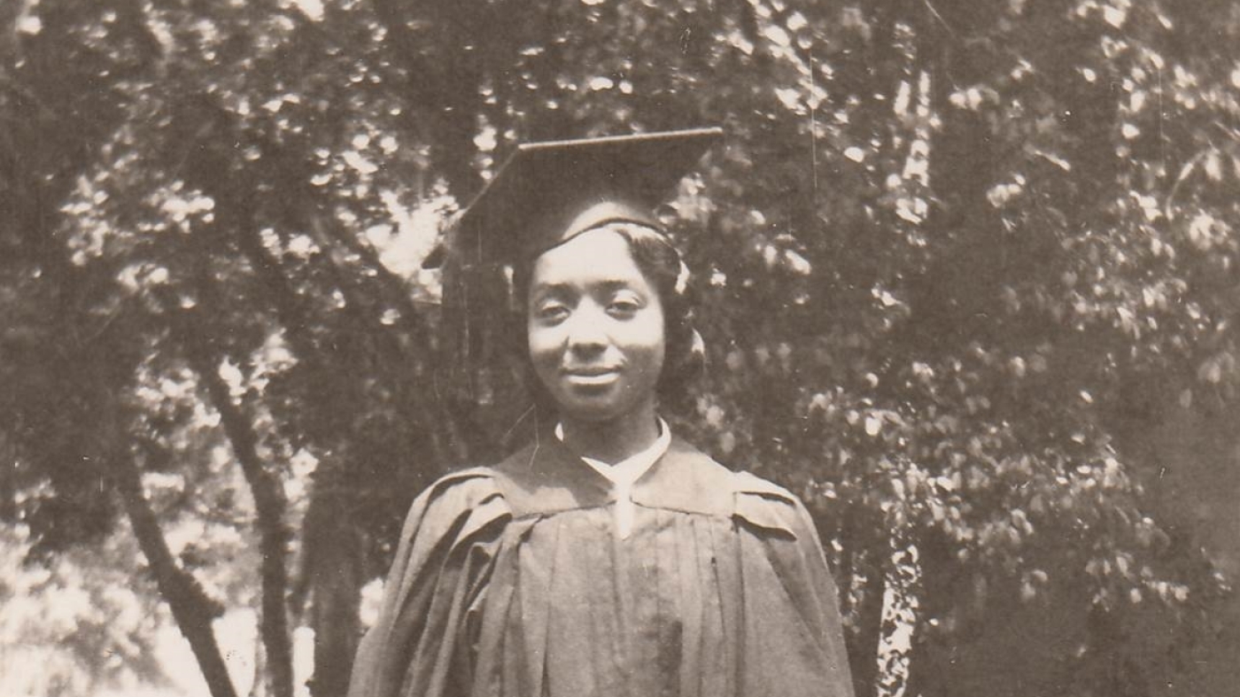 Renfrow Smith in her cap and gown the day she graduated from Grinnell College in 1937.