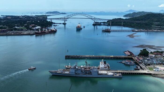 The U.S. Navy warship USS Lake Erie docks at the Port of Balboa in Panama City on Aug. 29, 2025. The United States sent three warships to the region amid escalating tensions with Venezuela. Mauricio Valenzuela/AFP via Getty Images